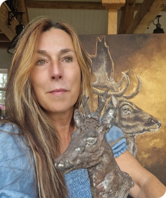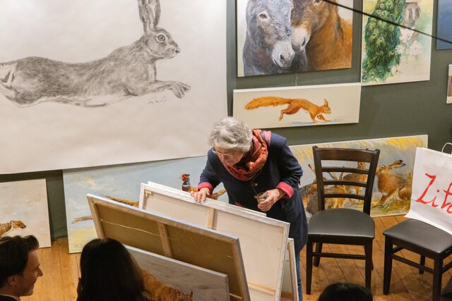 Neben meiner Kunstausbildung habe ich Tiermedizin studiert. Ich habe als Tierärztin und als Praktikantin bei Konrad Lorenz gearbeitet. Dadurch besitze ich besondere Kenntnisse in der Anatomie von Haustieren, die mir helfen, die Tiere naturgemäß wiederzugeben. Bei Konrad Lorenz und im Studium habe ich das Verständnis für den Bewegungsablauf, den Körperbau und die Körpersprache der Tiere erworben.